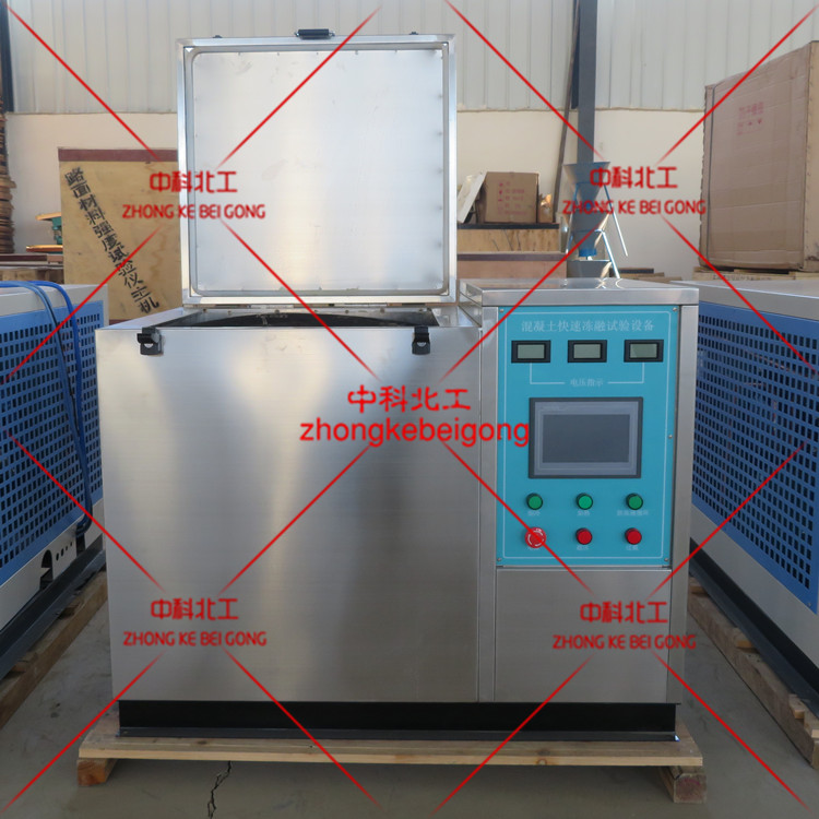 本設(shè)備是按照國家電力行業(yè)標(biāo)準(zhǔn)DL/T5150-2001《水工混凝土試驗規(guī)程》中的“混凝土抗凍性試驗”的要求、GB/T 50082-2009《普通混凝土長期性能和耐久性能試驗方法》中的“快凍法”以及美國ASTM/C666《混凝土快速凍融能力的標(biāo)準(zhǔn)試驗方法》設(shè)計制造的。能滿足國內(nèi)各相關(guān)行業(yè)設(shè)計、研究和施工部門對砼快速抗凍試驗設(shè)備的要求。