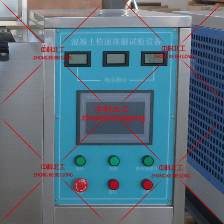 亦可改變電腦上報警點的設(shè)定值,按用戶要求的試件中心溫度和凍融循環(huán)介質(zhì)溫度進(jìn)行設(shè)定。溫度控制精度為±2.0℃。