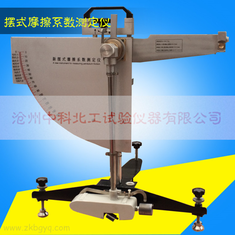 5、擺頭:由上下部接頭、擺桿、彈簧、杠桿、舉升柄、捶殼、滑溜塊及橡膠片(76mm*25.4mm*6.35mm)組成,它對(duì)擺動(dòng)中心有規(guī)定力矩,對(duì)路面有規(guī)定壓力。擺頭前與后、左與右的力矩保持平衡,它是度量路面摩擦系數(shù)的尺度。擺式摩擦系數(shù)測(cè)定儀的結(jié)構(gòu)照片如圖1所示。