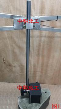 2、磁力表座立桿與機架U型塊固定,保證垂直、牢固。如圖1