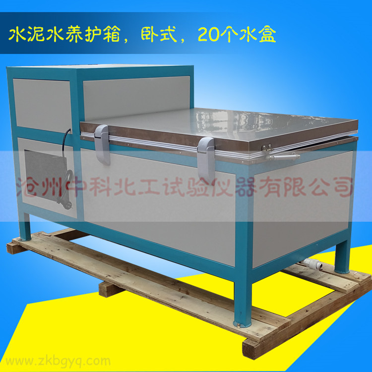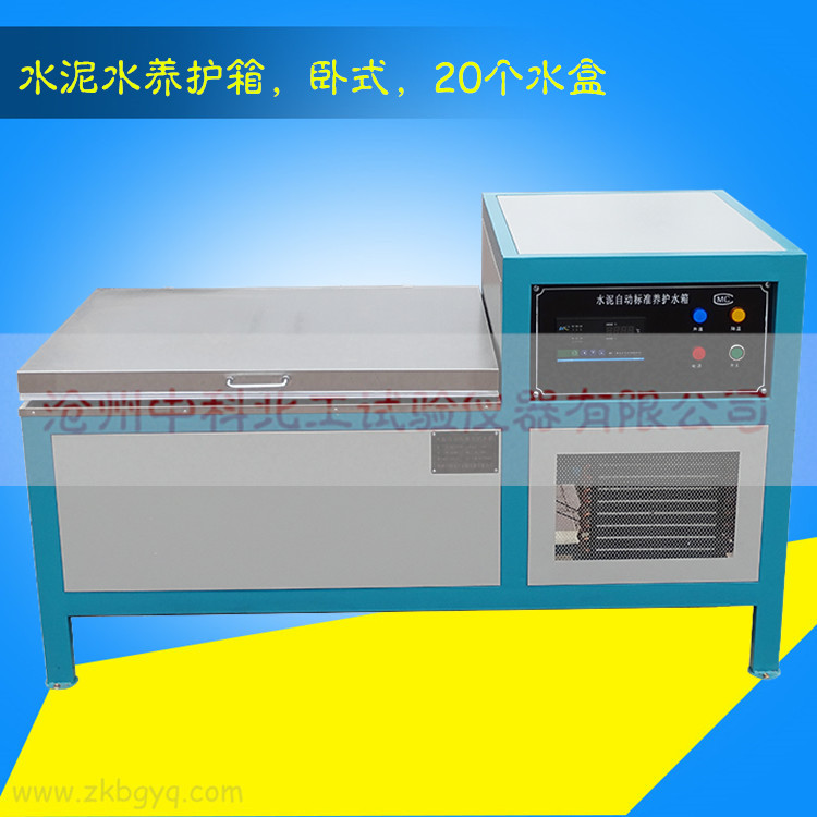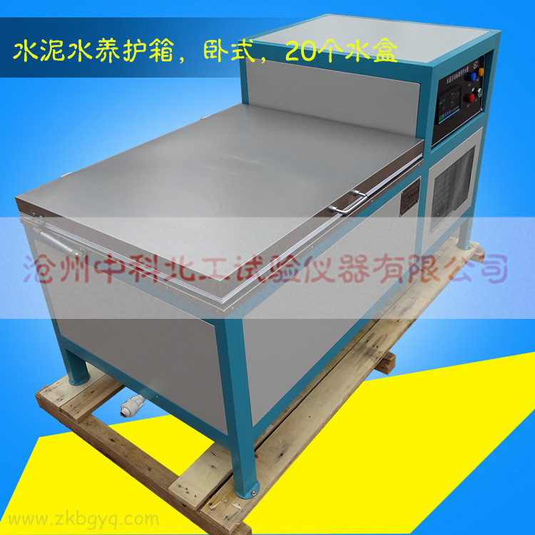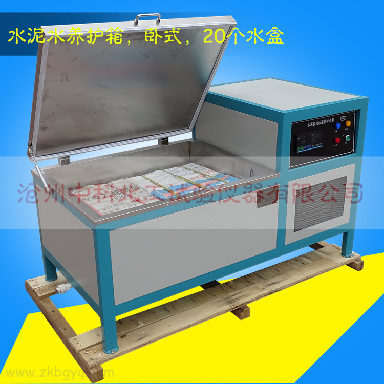 根據(jù)水泥膠砂強(qiáng)度檢測(cè)方法(ISO法)GB/T17671-1999的規(guī)定,對(duì)脫模后的水泥試件進(jìn)行水中養(yǎng)護(hù)。要求箱內(nèi)水溫20℃土1℃,試件必須在靜水中養(yǎng)護(hù)這一特殊要求。