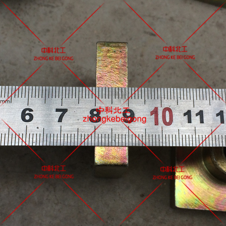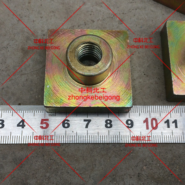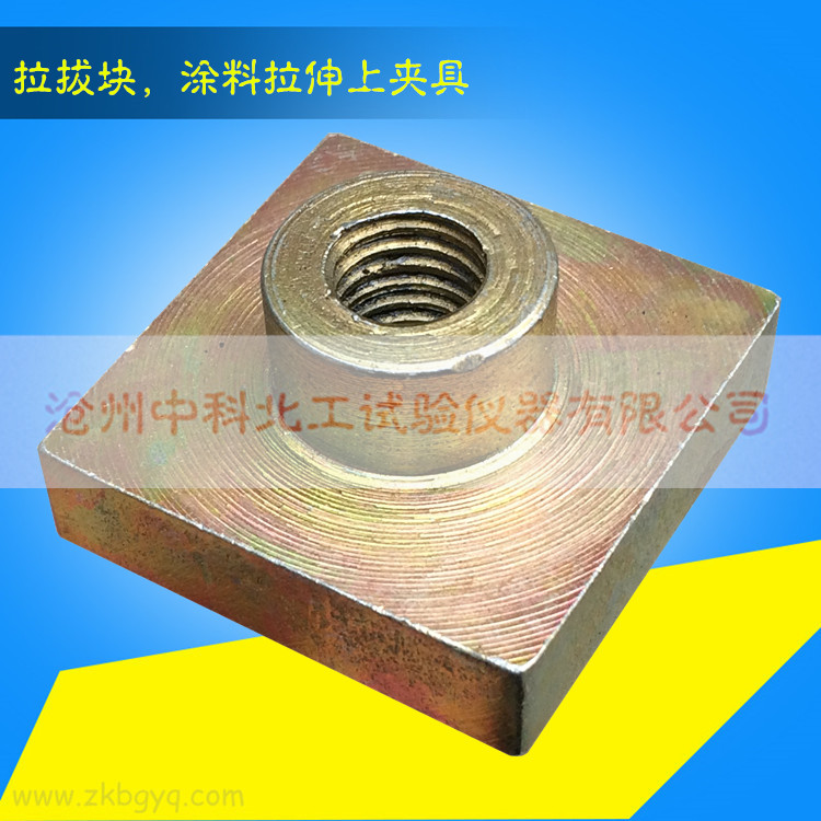 拉伸用上夾具,長40,寬40,厚10mm,其中一面有一個直徑20的圓柱鏈接,圓柱內(nèi)為M8的螺紋扣。