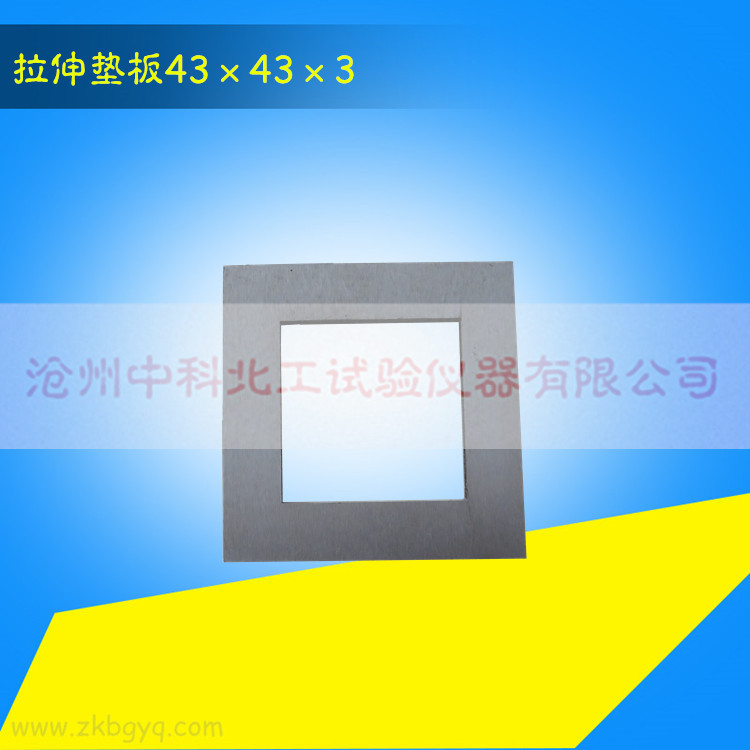 拉伸用墊板材質(zhì)為鐵質(zhì),外徑尺寸70×70mm,內(nèi)徑尺寸43×43mm,厚度為3mm。用于盛放試塊。
