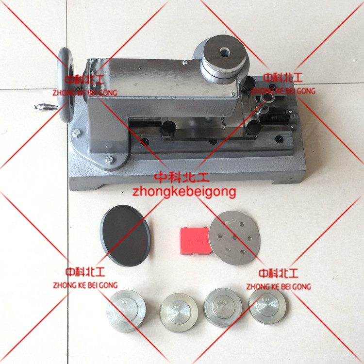 3、工作臺部分為一端裝有可提動的半螺母與絲杠聯(lián)接而帶動工作臺前后移動,工作臺上有四個(gè)螺母及兩塊壓板,用以壓放試片。