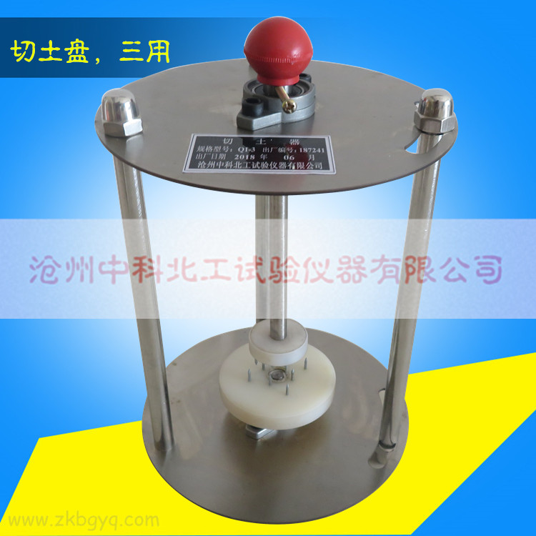 當(dāng)做到無(wú)側(cè)限抗壓強(qiáng)度、三軸試驗(yàn)時(shí),需利用本切土盤(pán)將試樣切成要求直徑。可制作Φ39.1、Φ61.8和Φ101的土樣。下釘盤(pán)底部裝有鋼珠使其轉(zhuǎn)動(dòng)靈活。