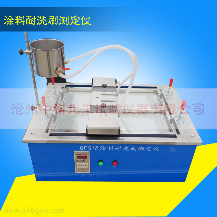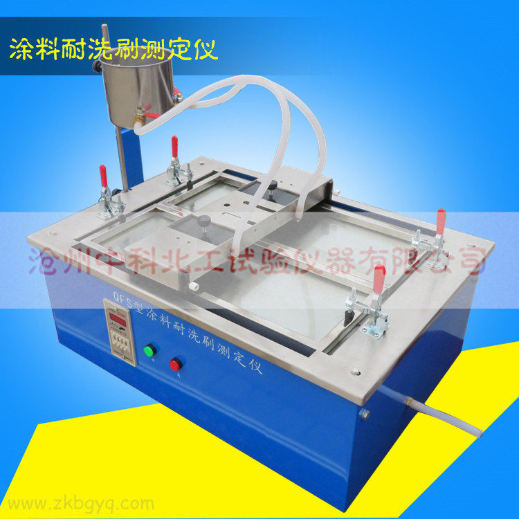 一、用途:涂料耐洗刷測定儀是用于評價涂料耐洗刷性能的儀器。還能評價任何薄膜復(fù)合處理過的表面。如油漆、電鍍、底板、罩面層、木材密度等形式的表面性能,該裝置對涂刷與標(biāo)準(zhǔn)試板上的涂層進(jìn)行洗刷,洗刷次數(shù)可由計數(shù)器直接讀出。根據(jù)耐洗刷的次數(shù),可評定涂料耐洗刷性能。本儀器與國家標(biāo)準(zhǔn)GB/T9755-2014配套使用,是涂料生產(chǎn)廠家和涂料研究部門必不可少的檢測儀器。