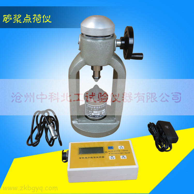在工作時(shí),將預(yù)先取好的砂漿試樣放在壓頭上,用手順時(shí)針慢慢轉(zhuǎn)動(dòng)電荷儀的手柄,使升降絲杠向下移動(dòng),當(dāng)加戴頭頂住砂漿試樣時(shí)就產(chǎn)生了壓力荷載,然后緩慢均勻的施加荷載直至試樣破壞為止,此時(shí)智能數(shù)字壓力顯示器將最大荷載載保持住。