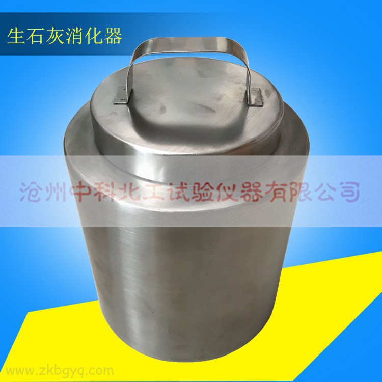 生石灰消化器是由耐石灰腐蝕的金屬制成的帶蓋雙側(cè)容器,兩層容器壁之間的空隙有保溫材料。并帶有一個三角網(wǎng)籃。容器內(nèi)徑11.3cm,高14cm。